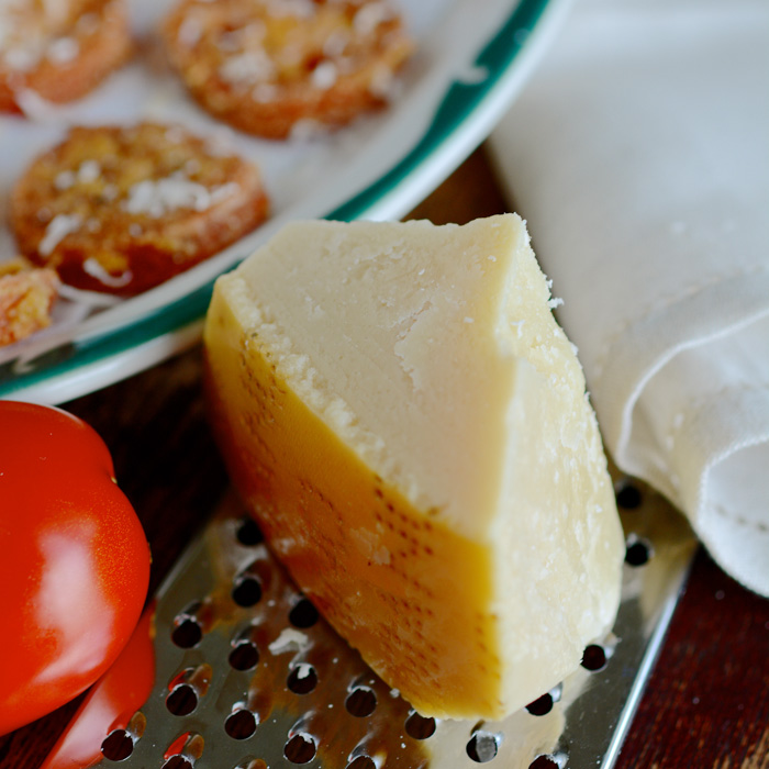 I used equal parts cornmeal, flour and bread crumbs for the crust and then gave them an extra boost of ‘Italian’ with a hefty shave of Parmigiano-Reggiano as they hit the plate.