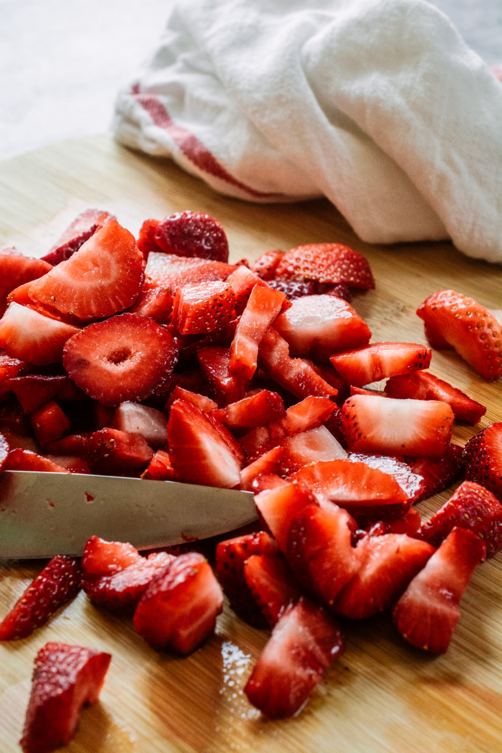 12 large strawberries, chopped (plus a few more sliced for topping)