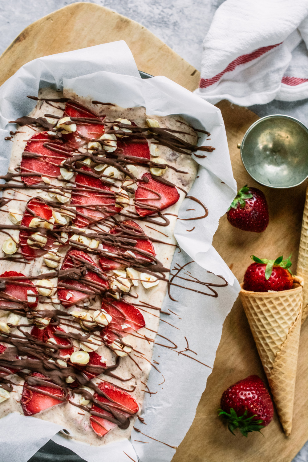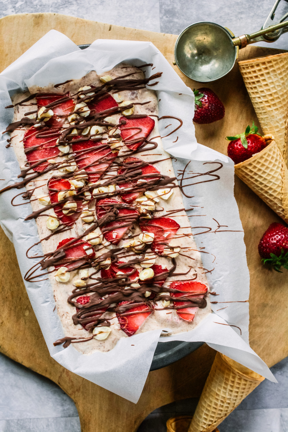 No-Churn Nutella Ice Cream with Strawberry and Hazelnut